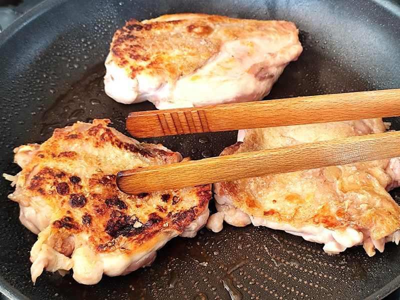 3 kuřecí prsa/stehenní řízky, 1 lžíce olivového nebo kokosového oleje, sůl, pepř.