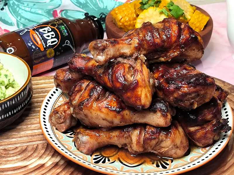 14 ks kuřecí paliček, 160 g BBQ omáčky se švestkami a přírodním kouřem, sůl.